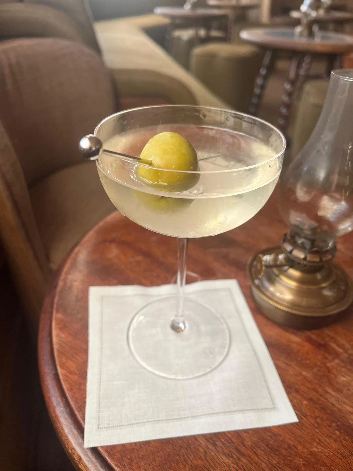 Upstairs, The Library leans into a quieter, more atmospheric style of drinking. Small touches, like the vintage linen coasters, add to the charm, while the room itself has quickly become a sought-after spot, often fully booked for those in search of a more intimate martini moment.
