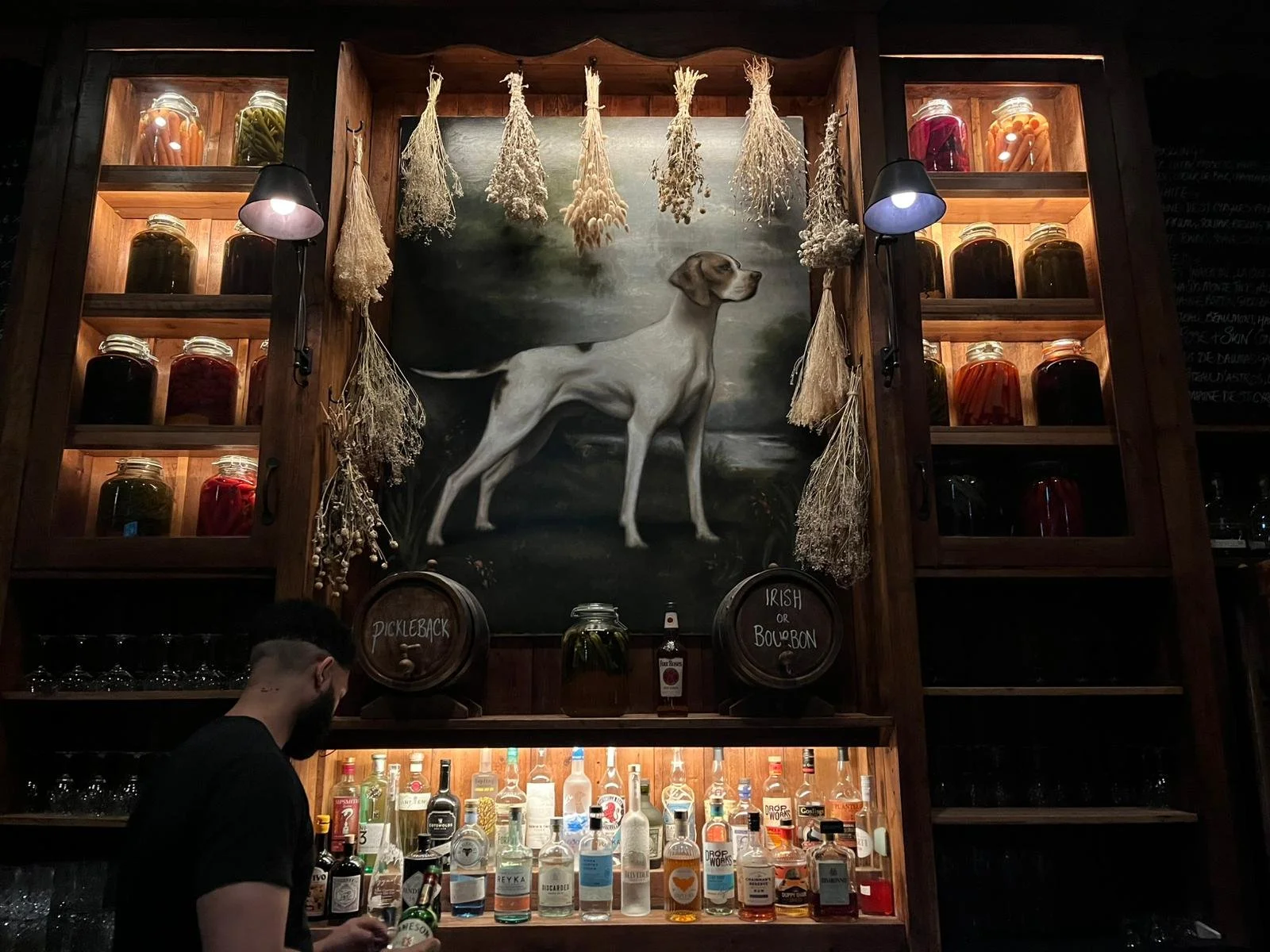 Their approach combines old and new, preserving the character of traditional buildings while introducing thoughtfully modern spaces. Their take on a Dirty Martini is particularly memorable, with a clear fondness for pickles and brine that gives the drink a distinctive edge (a detail that becomes apparent the moment you notice the walls in the bar downstairs).
